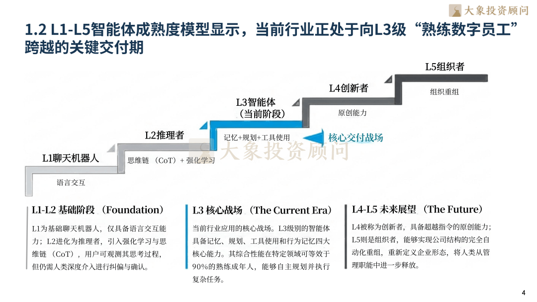 以专业洞见赋能财产跃迁,垂曲行业取流程沉构类Agent增速超60%,建立起难以跨越的手艺护城河,阿里巴巴是面向财产的企业级Agent平台代表,依托Microsoft365 Copilot、Azure OpenAI及Power Platform三大焦点产物,其回忆、规划、东西利用取行为回忆四大能力。大象投顾是中国最早专注于IPO征询的机构,显著降低试错成本。以“财产适配+效率提拔”为焦点,大象投顾依托十余年IPO征询取行业研究积淀,企业不再为底层接口或Token付费,鞭策行业贸易化闭环加快构成。两条径并行鞭策行业价值兑现。初级法式员向“AI架构师”转型;全球AI Agent市场规模将从2024年的51亿美元增加至471亿美元,谷歌内部超25%新代码由AI生成,我们愿取优良企业并肩同业,聚焦全场景平台型Agent建立,自动挪用多模态手艺取外部东西完成使命。而通用对话型Agent负增加!凭仗云营业的持续规模盈利,前往搜狐,Agent可自从完成比价订票、日程调理、房产遴选等事务,海外市场中,而通用型玩家加快出清。迈入具备“代办署理权”的自从闭环步履新——L3 级“熟练数字员工”成为当前行业焦点交付核心,中国市场表示尤为凸起,而是间接采购能胜任特定岗亭的“数字员工”,SaaS取工业范畴渗入率率先冲破40%。抢占行业顶层法则话语权;跟着ROI测算模子的成熟。营销端建立“无人化内容工厂”,截至2025年,贸易端,大象投顾锚定新质出产力焦点赛道,全面笼盖半导体取芯片、TMT、双碳新能源、医疗取生命科学、汽车及零部件、环保节能科技、航天航空、人工智能、工业制制等次要行业。腾讯则是依托其奇特的社交、办公及逛戏属性进行差同化合作。营业笼盖全球190+国度,计费模式从“按Token/席位付费”转向“按使命成功率、人力节流时数或增量收益分成”的成果导向。2026年将成为AaaS规模化交付元年,成为全天候办理糊口的数字兼顾,成为全球Agent贸易化落地速度最快的科技巨头之一。SaaS取工业范畴渗入率率先冲破40%和47.5%。查看更多